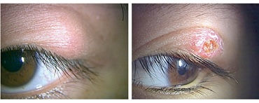 Na przykład: gdy brzegi powiek (睑弦) są zaczerwienione, wilgotne i nadżarte, umiejscowienie choroby dotyczy koła mięśniowego, a wewnętrznie – śledziony (原文作“牌”,应作“脾”注); ponieważ zaczerwienienie, wilgoć i nadżerki wynikają z dokuczającej wilgotno-gorącej patogenii, zatem zespół ten zalicza się do wilgotno-gorąca śledziony i żołądka.