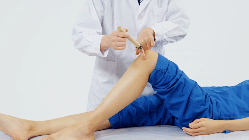 Objawy kliniczne obejmują ból, obrzęk, sztywność i ograniczoną ruchomość stawu kolanowego, nasilające się podczas obciążenia lub w chłodne dni. Terapia moksą (ai jiu, 艾灸) charakteryzuje się działaniem ogrzewającym i udrażniającym meridiany, rozpraszającym zimno i wilgoć, a także tonizującym qi i krew. Jest prosta w wykonaniu, dobrze tolerowana przez pacjentów i może być stosowana zarówno w warunkach domowych, jak i klinicznych.